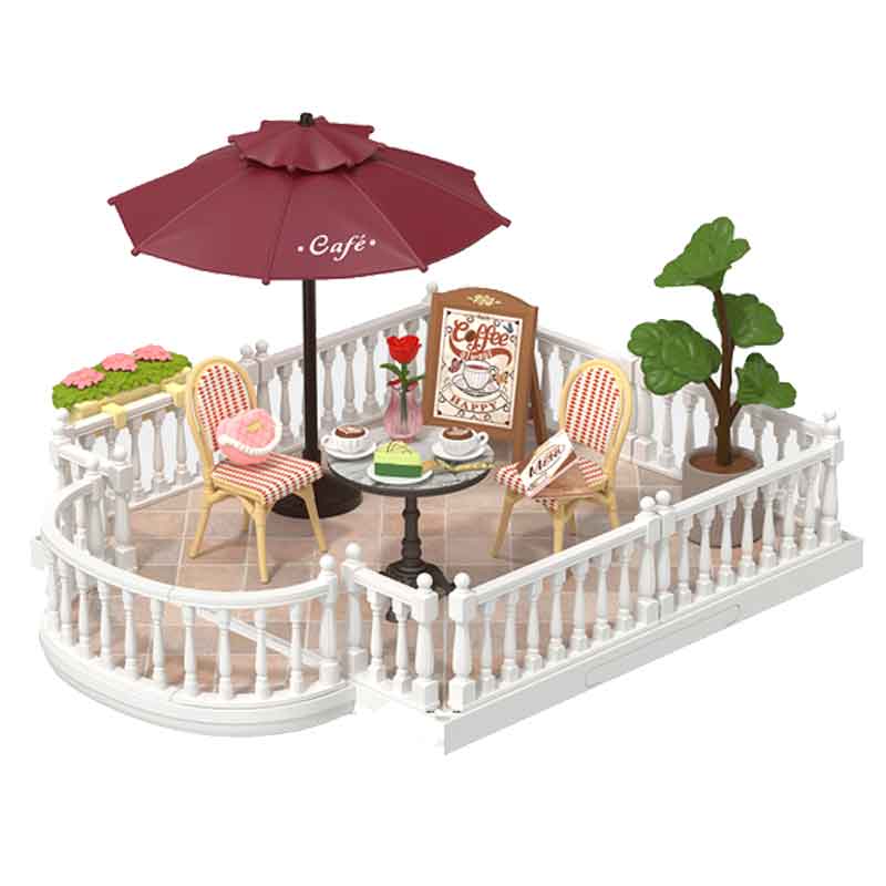 La Terraza de Café Rolife Chic DWP09 es un elegante paquete de extensión para tus habitaciones en miniatura de la Serie Super Creator. Diseñada para un montaje rápido y una conexión sencilla, te permite añadir una moderna cafetería al aire libre o un acogedor balcón a tu mundo en miniatura.