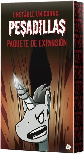 Unstable Unicorns: Pesadillas es la expansión del juego de cartas Unstable Unicorns en el que podrás entrar en una casa encantada y atenerte a las consecuencias. Ten cuidado con el Unicornio acuchillador que te puede estar esperando… Esta expansión incluye elementos de terror, además de las nuevas cartas de Personaje, cartas de Magia, cartas de Mejora y cartas de Bajada de Pesadilla. ¡Entra y descubre los misterios de la casa encantada!